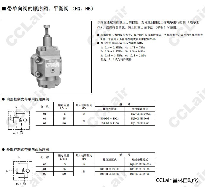 詳細信息 HQ3-DT,HQ3-DG,HQ2-DT,HQ2-DG,HQ3-DT1K-03,HQ3-DT1K-06,HQ3-DT4K-06,HQ3-DG5K-03,單向順序閥