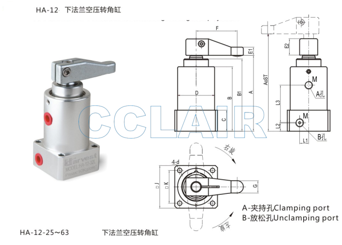 HA-12-25,HA-12-32,HA-12-40,HA-12-50,HA-12-63,下法蘭空壓轉角缸
