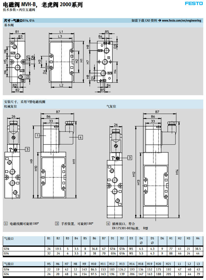 MVH-5-1/8-L-B,MVH-5-1/4-L-B,MVH-5-3/8-L-B,festo電磁閥