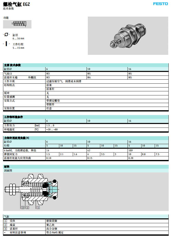 EGZ-6-5,EGZ-6-10,EGZ-6-15,EGZ-10-5,EGZ-16-10,EGZ-16-15,festo螺栓氣缸