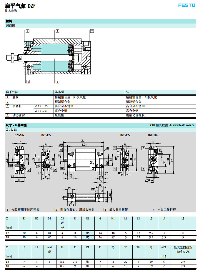 DZF-12,DZF-18,DZF-25,DZF-32,DZF-40,DZF-50,DZF-63,festo扁平氣缸 |