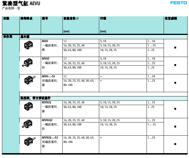 ADVU-12,AEVUZ-32,ADVULQ-50,AEVULQZ-63,ADVU-25,festo緊湊型氣缸