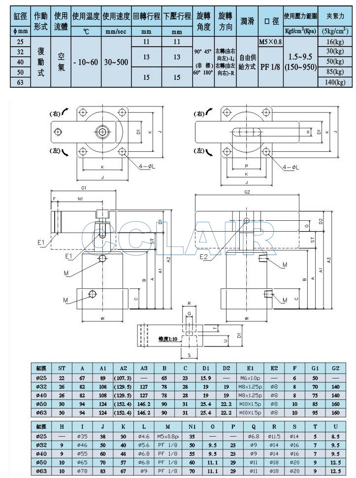 PSF-25,PSF-32S,PSF-40S,PSF-50S,PSF-63S,PSF-32D,PSF-40D,PSF-50D,轉角氣缸