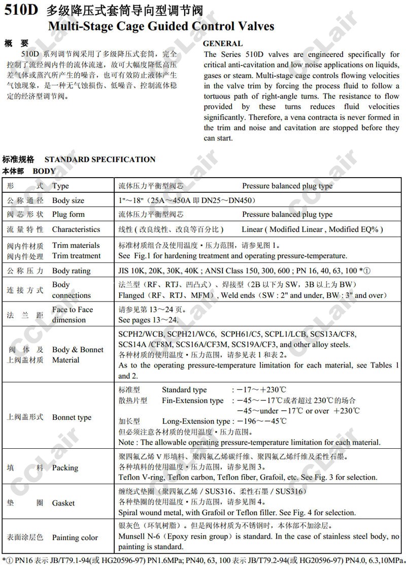 詳細信息 510D-5200LA,510D-6300LA,高壓多級降壓式套筒導向型調節閥