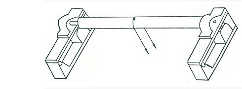 (2)將傳感器安裝好的架座固定在主機架兩邊,并在傳感器架座的壓板上固定檢測輥如圖七,并保持與其他導輥平行。