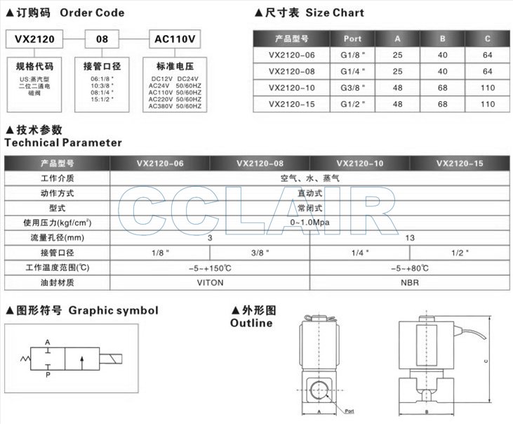 詳細信息 VX2120-06,VX2120-08,VX2120-10,VX2120-15,二位二通電磁閥