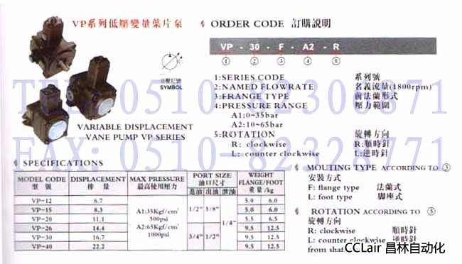 VP-30-F-A1,VP-30-F-A2,VP-40-F-A1,VP-40-F-A2,低壓變量葉片泵