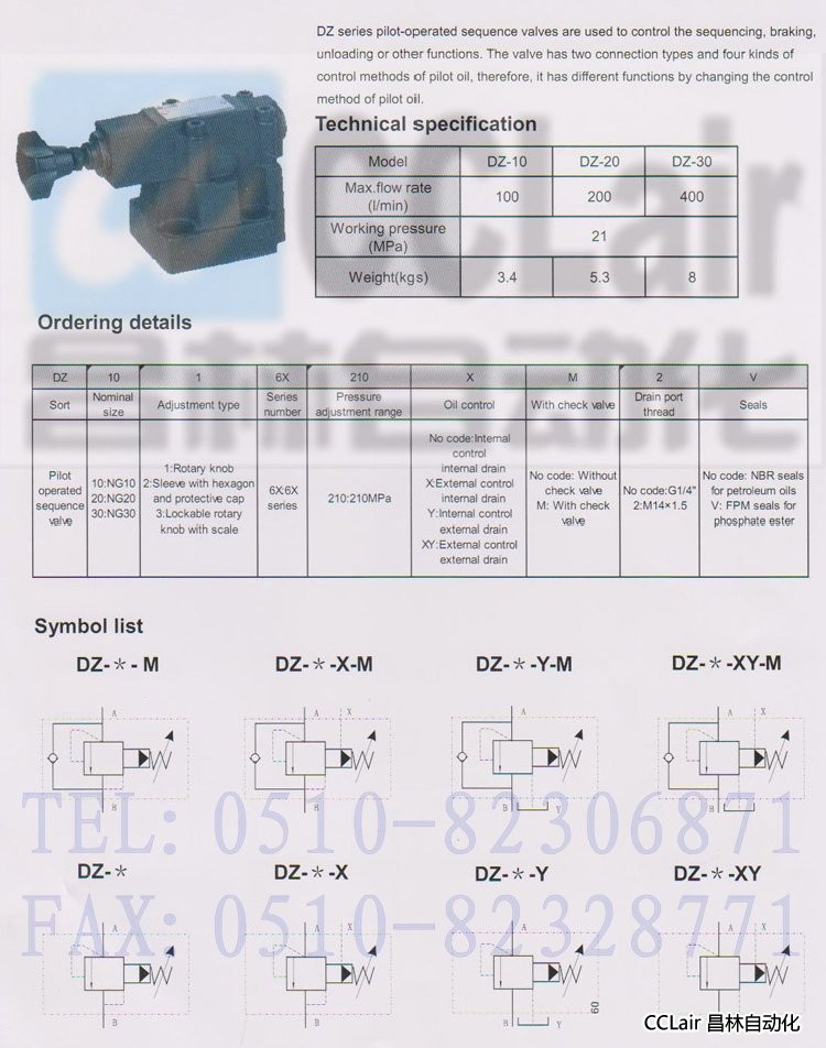 詳細信息 DZ-10,DZ-20,DZ-30,先導式順序閥