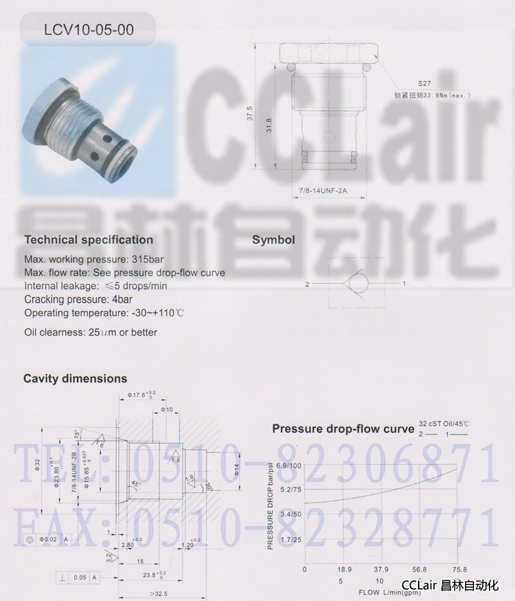 詳細信息 LCV10-05-00,單向閥