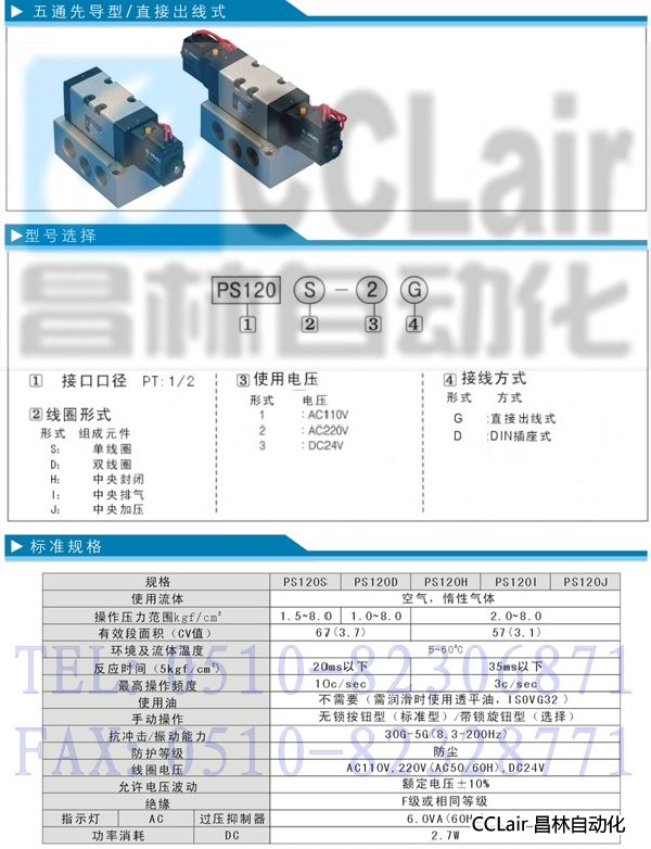 詳細信息 PS120S,PS120D,PS120H,PS120I,PS120J,五通先導型電磁閥