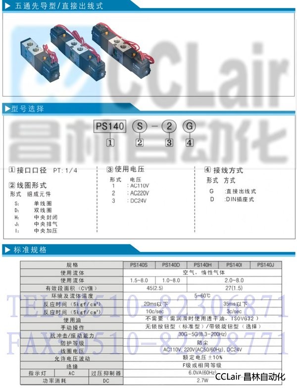詳細信息 PS140S,PS140D,PS140H,PS140I,PS140J,五通先導型電磁閥