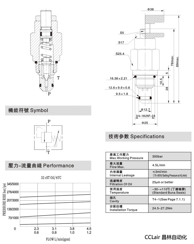 液壓閥技術(shù)參數: