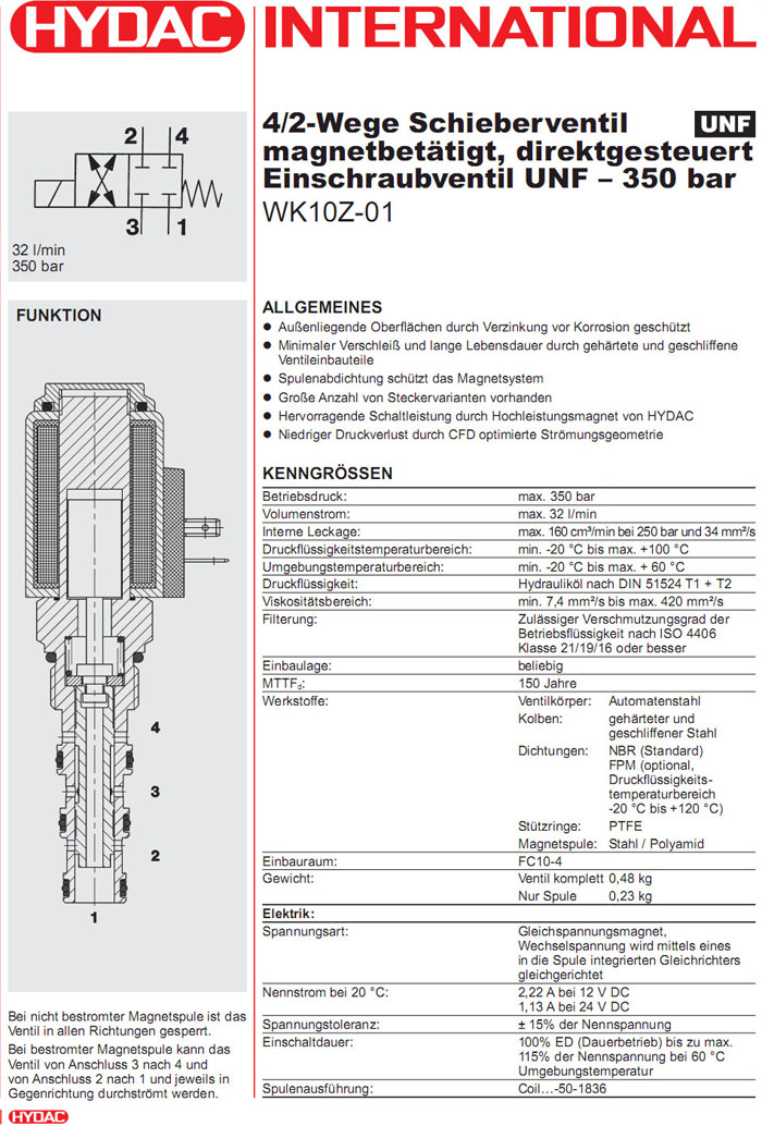 首頁(yè) > 產(chǎn)品&解決方案 > WS10Z-01-C-N-24DG,WS10Z-01-C-N-230AG,HYDAC電磁2/2方向座閥