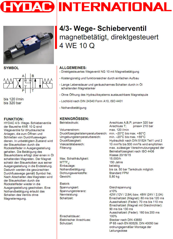 首頁(yè) > 產(chǎn)品&解決方案 > 4WE10QS01-12DG/V,4WE10QS01-24DG/V,HYDAC電磁4/3方向滑閥