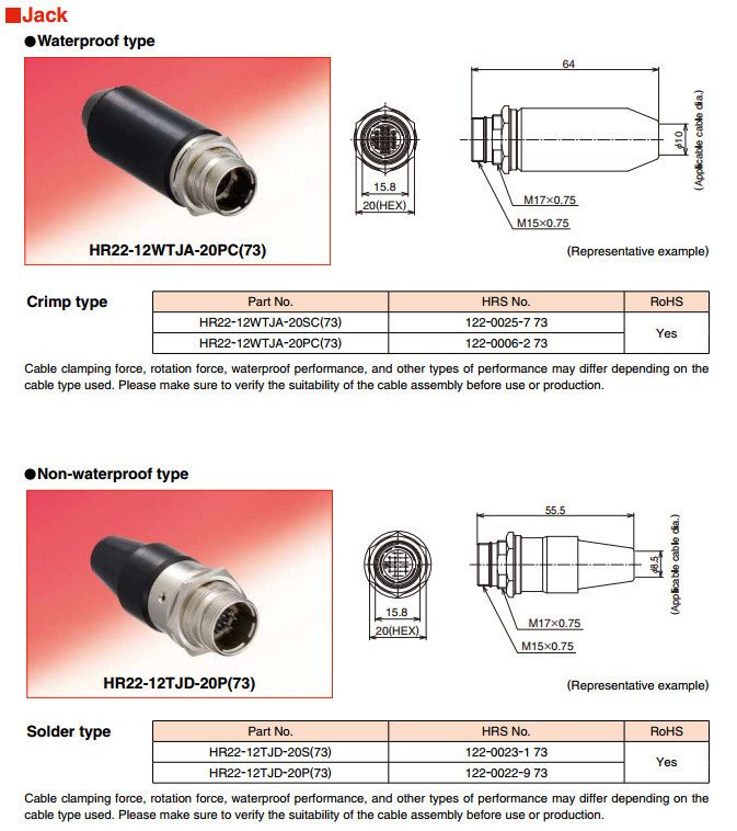 JR13WCC-9,JR13WCC-10,HR22-12WTRA-20SC,hirose,HR22-12WTRA-20PC,HR22-12WTRA-20S,