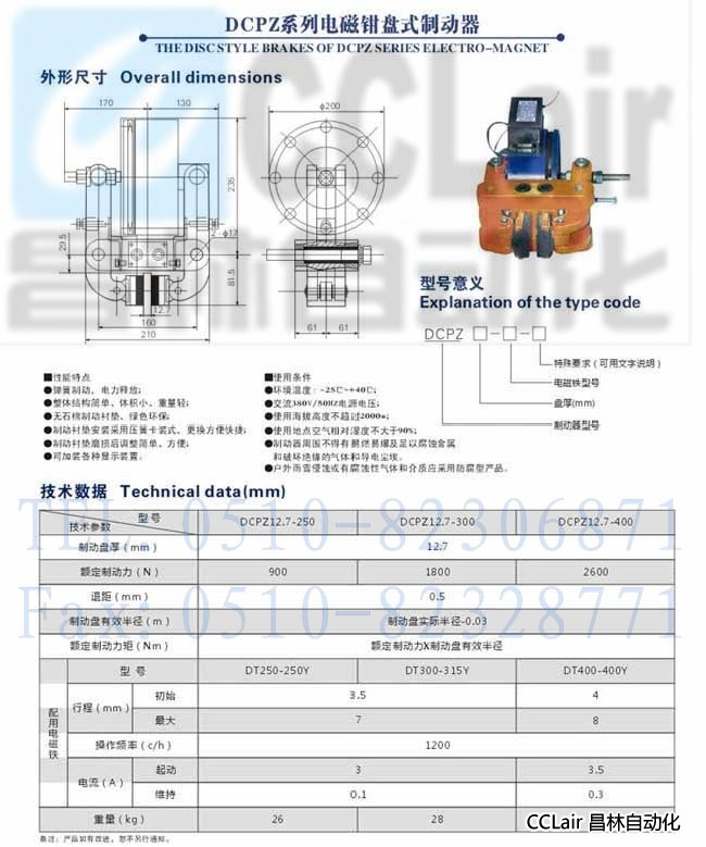 DCPZ12.7-250,DCPZ12.7-300,DCPZ12.7-400,電磁鉗盤(pán)式制動(dòng)器