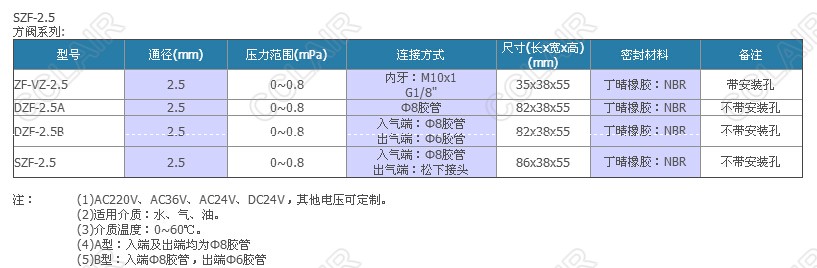 SZF-VZ-2.5,ZF-VZ-2.5,DZF-VZ-2.5A,DZF-VZ-2.5B,焊機專(zhuān)用電磁閥