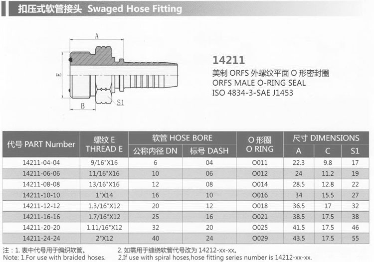 詳細信息 14211-04-04,14211-06-06,14211-08-08,14211-10-10,14211-12-12,14211-20-20,扣壓式軟管接頭 14211-16-16,14211-24-24,