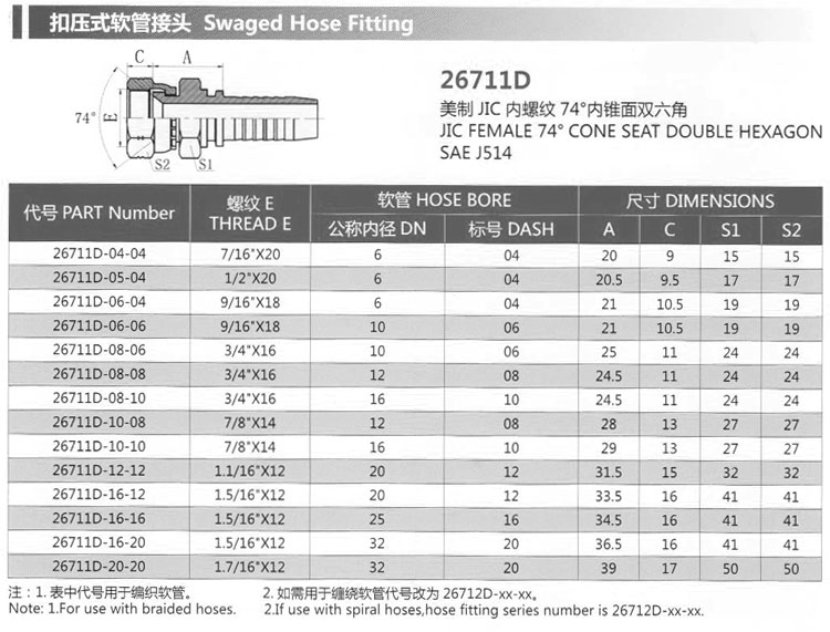 詳細信息 26711D-04-04,26711D-05-04,26711D-06-04,26711D-16-20,26711D-20-20,扣壓式軟管接頭 26711D-16-12,26711D-16-16,