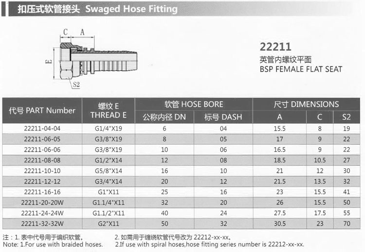 詳細信息 22211-04-04,22211-06-06,22211-08-08,22211-10-10,22211-20-20W,22211-32-32W,扣壓式軟管接頭 22211-06-05,22211-12-12,22211-16-16,22211-24-24W,