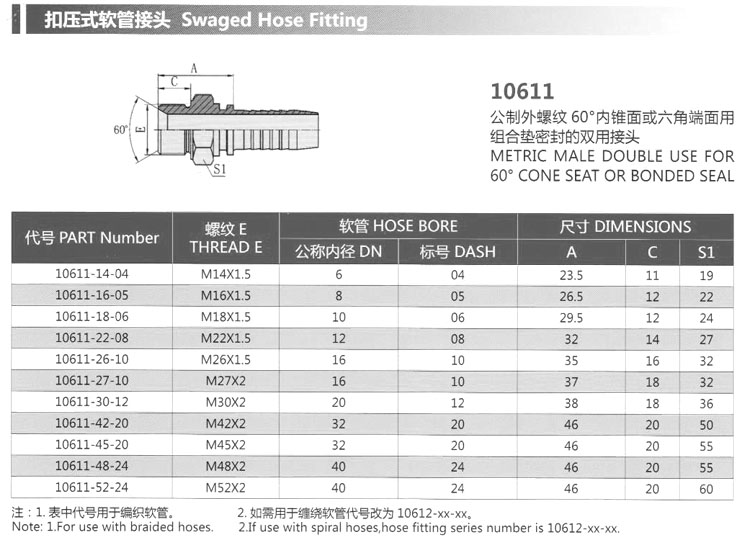 詳細信息 10611-14-04,10611-22-08,10611-30-12,10611-42-20,10611-52-24,扣壓式軟管接頭 10611-16-05,10611-18-06,10611-26-10,10611-27-10,10611-45-20,10611-45-24,