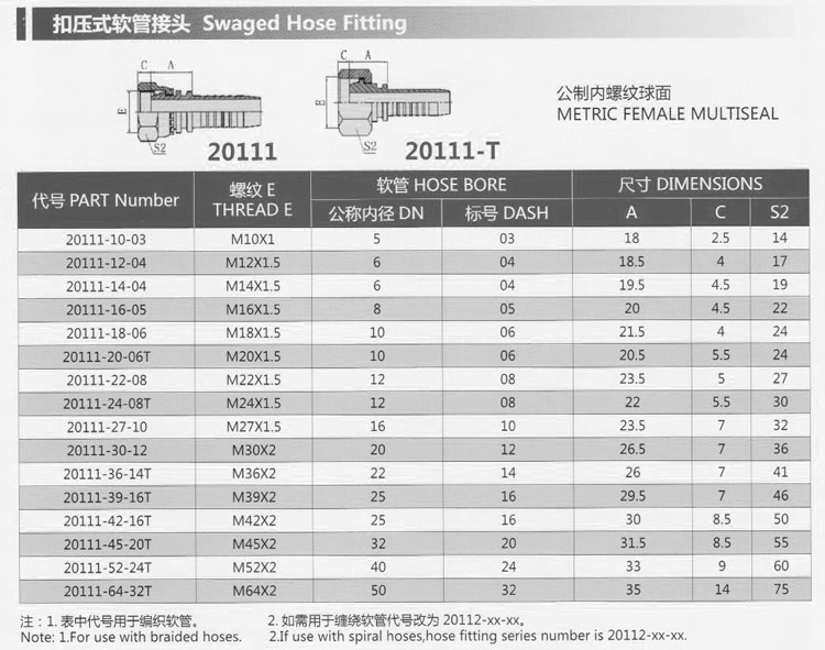 詳細信息 20111-10-03,20111-20-06T,20111-30-12,20111-42-16T,20111-52-24T,20111-64-32T,扣壓式軟管接頭 20111-36-14T,20111-39-16T,20111-45-20T,