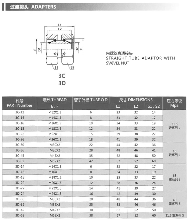 詳細信息 3D-14,3D-16,3D-18,3D-20,3D-22,3C-26,3C-30,3C-36,3C-45,3C-52,內螺紋直通接頭 3D-24,3D-30,3D-36,3D-42,3D-52,3C-12,3C-14,3C-16,3C-18,3C-22,