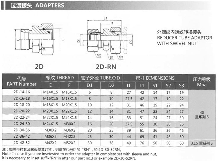 詳細信息 2D-14-16,2D-16-18,2D-18-20,2D-20-22,2D-22-24,2D-24-30,2D-30-36,2D-36-42,2D-42-52,轉換接頭