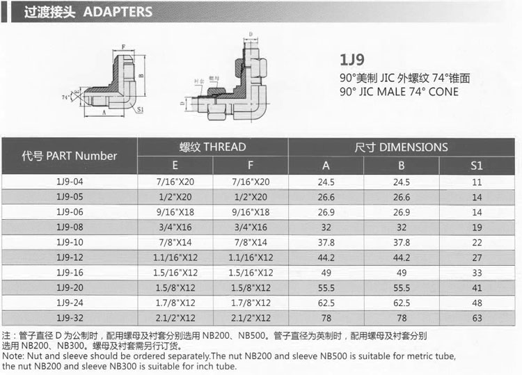 詳細信息 1J9-04,1J9-05,1J9-06,1J9-08,1J9-10,1J9-12,1J9-16,1J9-20,1J9-24,1J9-32,過(guò)渡接頭