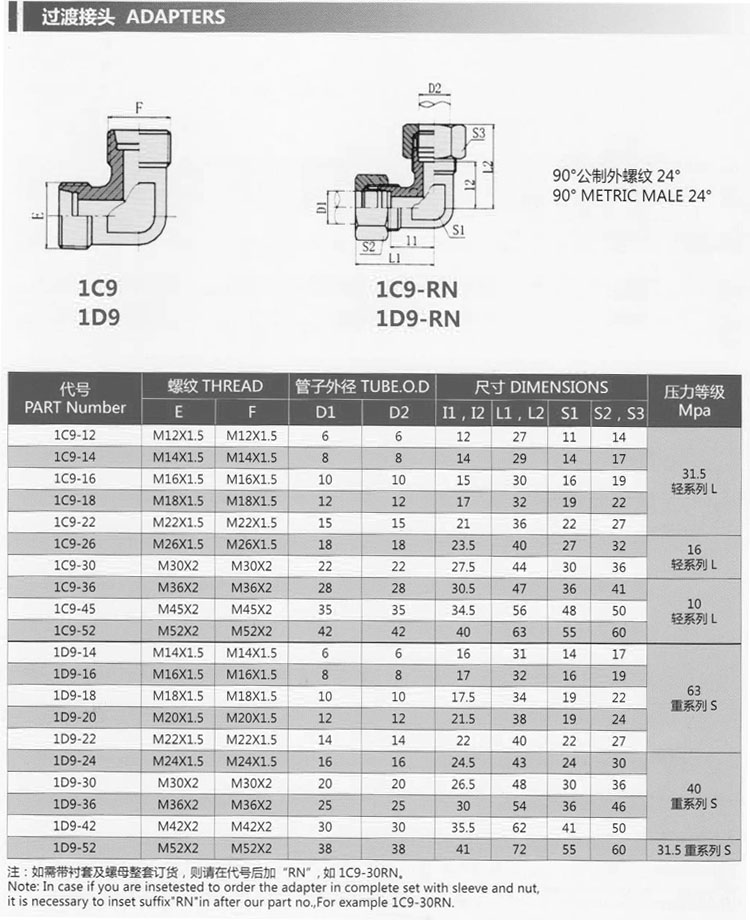 1C9-12,1C9-14,1C9-16,1C9-18,1C9-22,1C9-26,1D9-30,1D9-36,1D9-42,1D9-52,過(guò)渡接頭