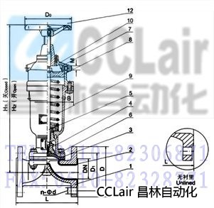 部件列表:1、閥體 2、閥體襯里 3、隔膜 4、閥瓣 5、下閥桿 6、閥蓋 7、氣缸 8、活塞 9、彈簧 10、氣缸蓋 11、上閥桿 12、手輪