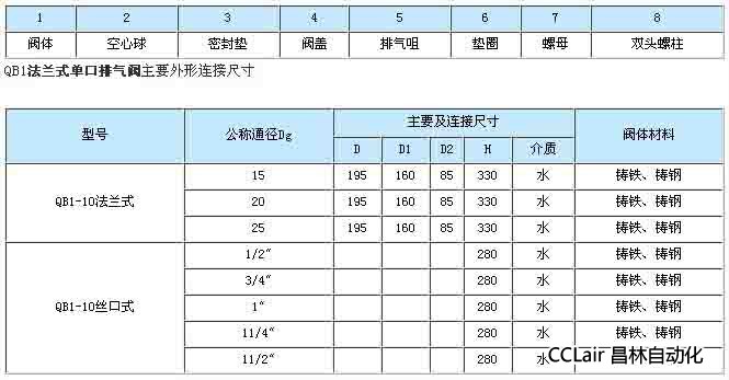 QB1法蘭式單口排氣閥用途及主要性能規范: