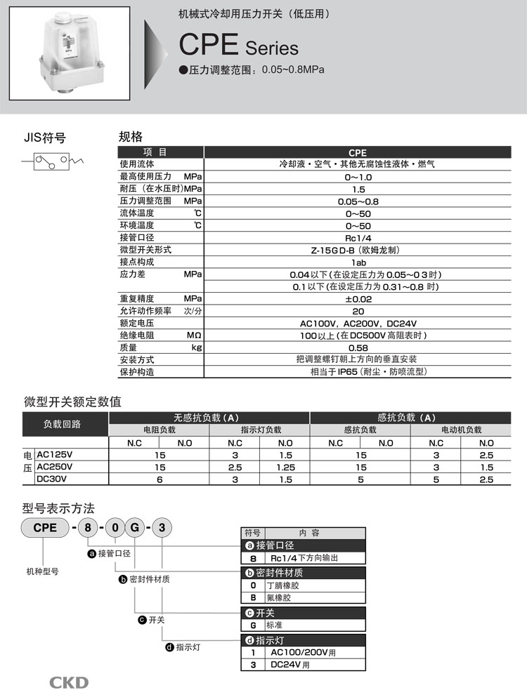 CPE-8-OG-1,CPE-8-OG-3,CPE-8-BG-1,CPE-8-BG-3,CKD壓力開(kāi)關(guān)