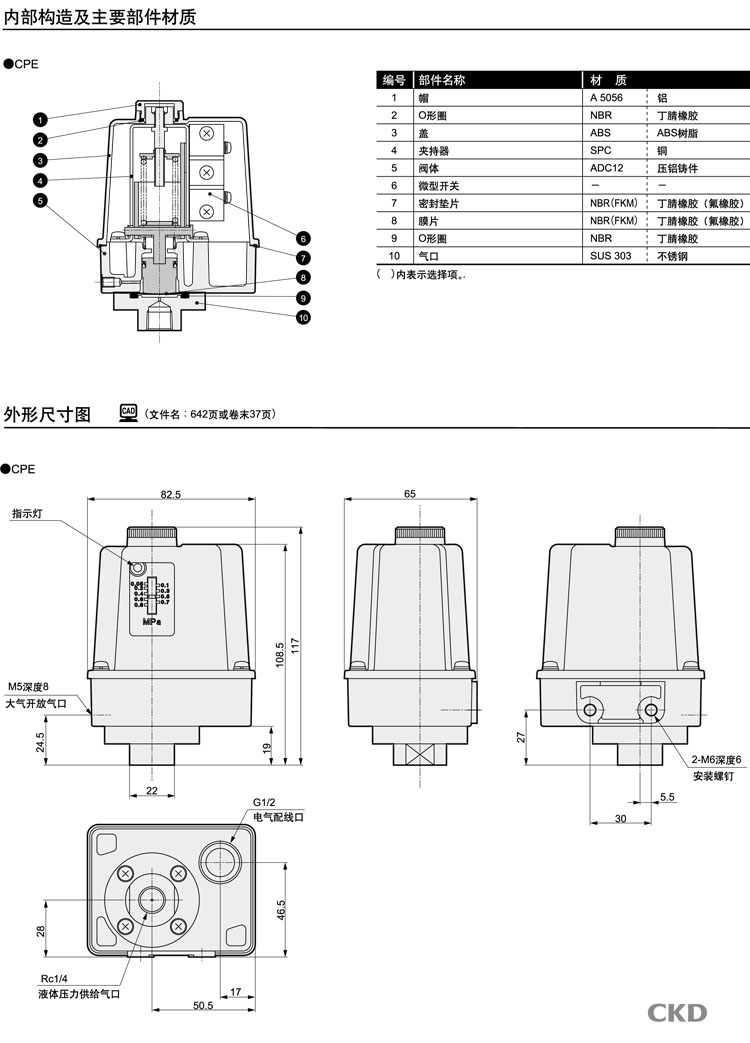 詳細信息 CPE-8-OG-1,CPE-8-OG-3,CPE-8-BG-1,CPE-8-BG-3,CKD壓力開(kāi)關(guān)