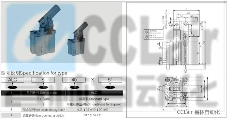ALC-25,ALC-32,ALC-40,ALC-50,ALC-63,杠桿式冶具氣缸