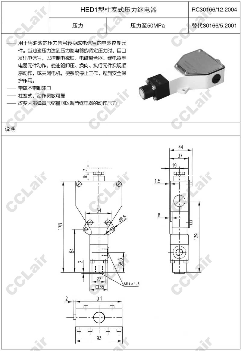 HED1K40,HED0K40,huade柱塞式壓力繼電器