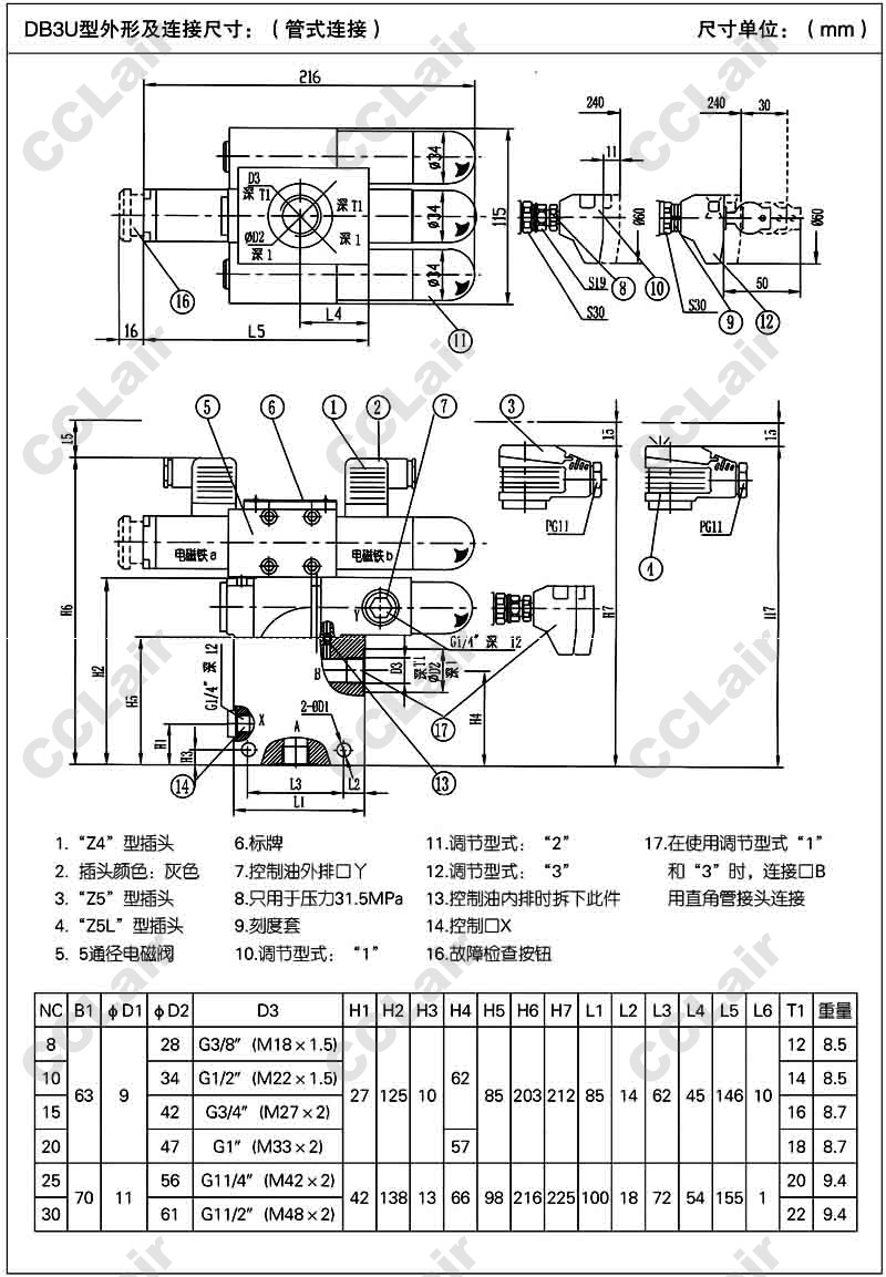 DB3U,DBC3U,DBT2U,DB3U20N-1-30,DB3U30GE-1-30,DBC3U30GE-2-30,DBT2U30GN-3-30,huade多級電液先導溢流閥