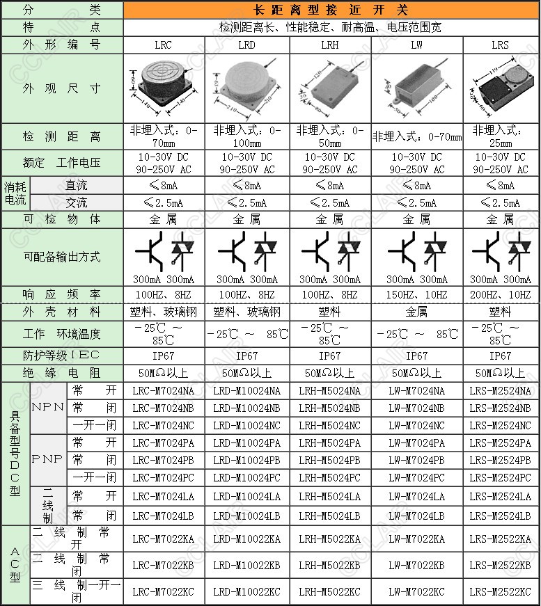 LRC-M7024NA,LRD-M10024NA,LRH-M5024NA,LW-M7024NA,LRS-M2524NA,LRC-M7024NB,長(cháng)距離型接近開(kāi)關(guān)