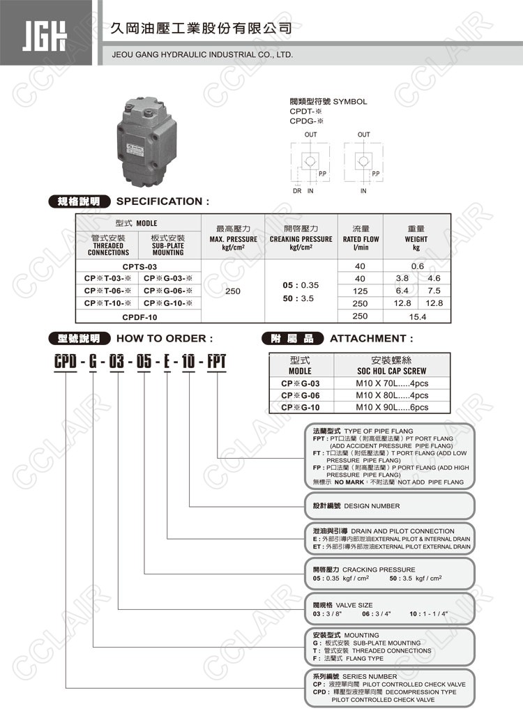 JeouGang臺灣久岡,液控單向閥CPD-G-03-05-E-10-FPT,CPD-G-10-05-ET-10-FT,CPD-T-10-05-E-10,CPD-F-10-05-ET-10-FP,CP-G-03-05-E-10-FPT,CP-G-10-05-ET-10,CP-T-03-05-ET-10,CP-T-10-05-E-10-FPT,CP-T-10-05-E-10-FT,CP-F-10-05-ET-10-FPT,CP-F-10-05-ET-10