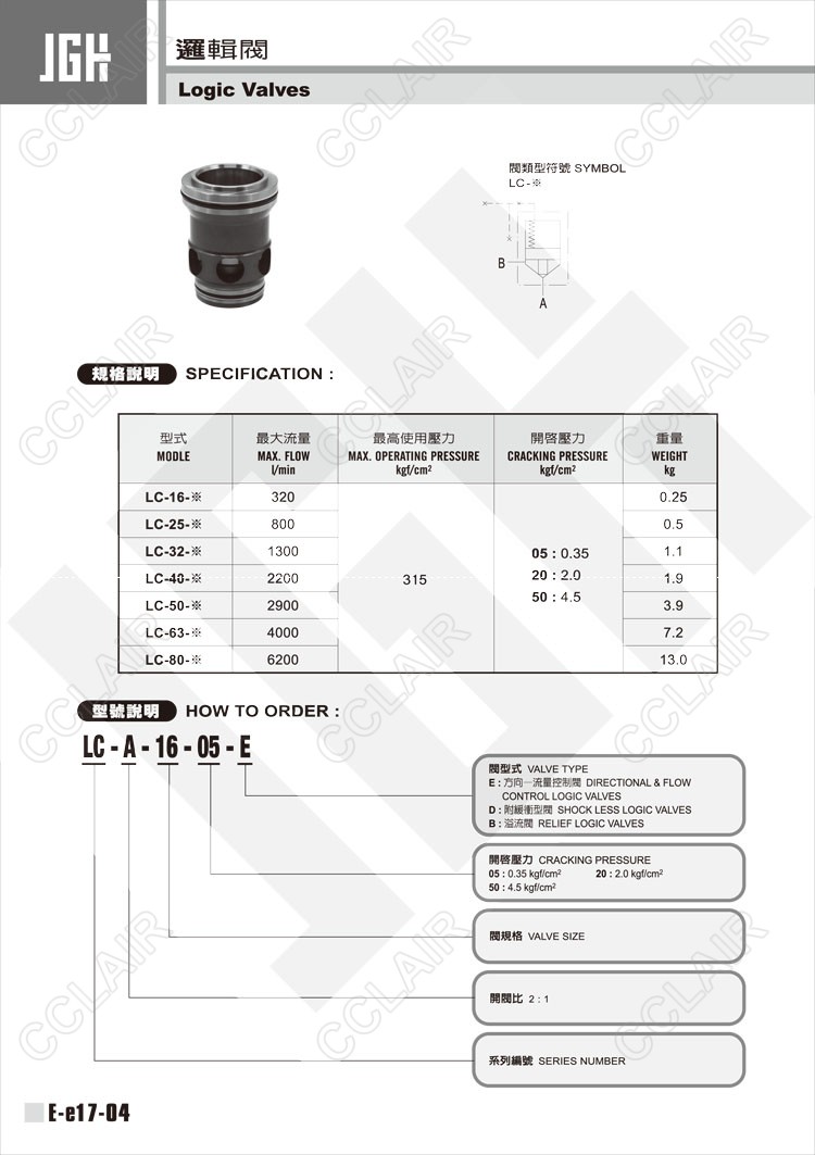 JeouGang臺灣久岡,邏輯閥LC-A-16-05-E,LC-A-16-05-D,LC-A-25-50-D,LC-A-25-50-B,LC-A-32-05-E,LC-A-32-05-D,LC-A-40-50-D,LC-A-40-50-B,LC-A-50-05-E,LC-A-50-05-D,LC-A-63-50-D,LC-A-63-50-B,LC-A-80-05-E,LC-A-80-05-D,LC-A-80-05-B,LC-A-80-20-E