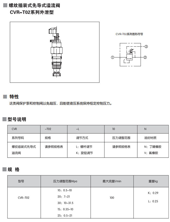 CVR-T02-L10N,CVR-T02-K10N,CVR-T02-L20N,CVR-T02-L30N,CVR-T02-L1SN,CVR-T02-L2SN,螺紋插裝式先導式溢流閥 詳細信息 CVR-T02-L10N,CVR-T02-K10N,CVR-T02-L20N,CVR-T02-L30N,CVR-T02-L1SN,CVR-T02-L2SN,螺紋插裝式先導式溢流閥