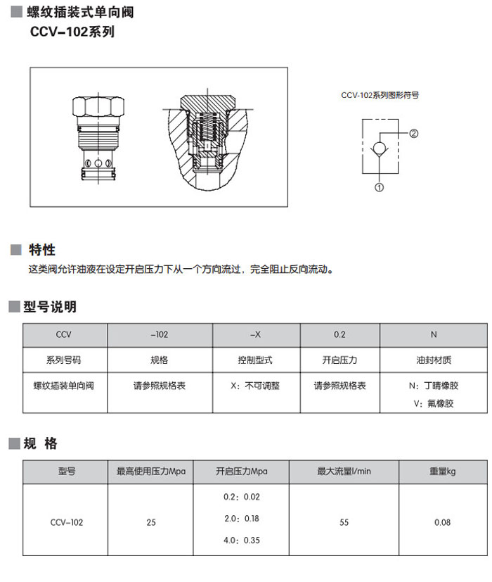 CCV-102-X-0.2N,CCV-102-X-2.0N,CCV-102-X-4.0N,CCV-102-X-0.2V,CCV-102-X-2.0V,CCV-102-X-4.0V,螺紋插裝式單向閥 詳細信息 CCV-102-X0.2N,CCV-102-X2.0N,CCV-102-X4.0N,CCV-102-X0.2V,CCV-102-X2.0V,CCV-102-X4.0V,螺紋插裝式單向閥