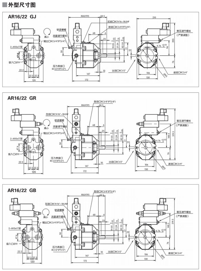 AR16,AR22,AR16FR01BSK10X,AR22FR01BSK10X,AR16FL01CSK10X,AR22FLHLCG10X,雙聯(lián)變量柱塞泵