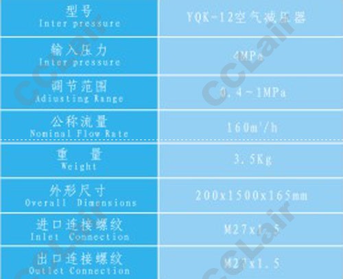 詳細信息 YQK-12,空氣減壓器,CCLair