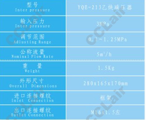 詳細信息 YQE-213,乙炔減壓器,CCLair