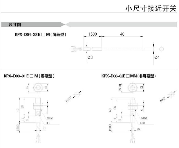 KPX-D04-X8E□M,KPX-D08-01E□M,KPX-D08-02E□MN,Koino小尺寸接近開(kāi)關(guān)