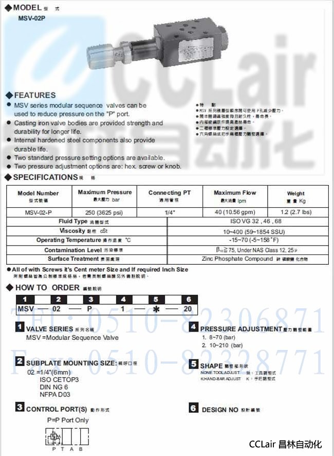 MSV-02-P,積層型順序閥,