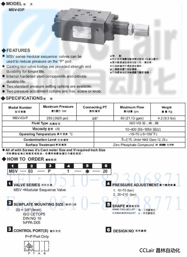 MSV-03-P,積層型順序閥,
