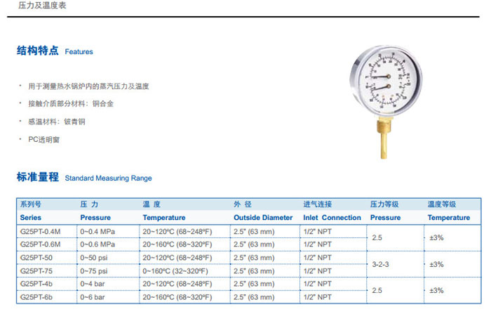 G25PT-0.4M,G25PT-0.6M,G25PT-50,G25PT-75,G25PT-4b,G25PT-6b,壓力及溫度表 詳細信息 G25PT-0.4M,G25PT-0.6M,G25PT-50,G25PT-75,G25PT-4b,G25PT-6b,壓力及溫度表