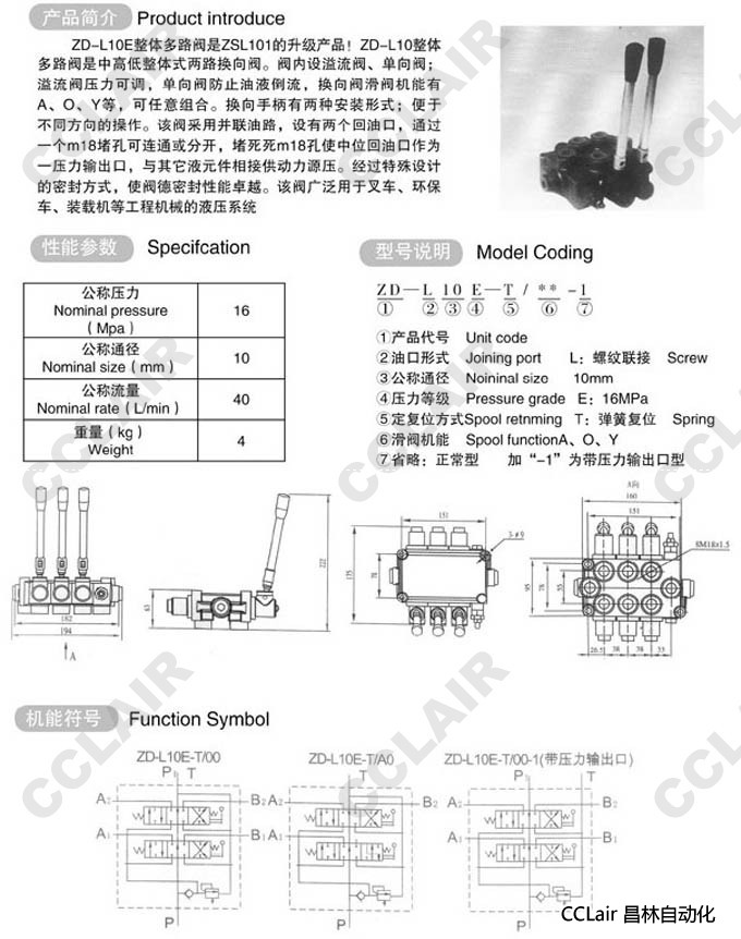 詳細信息 ZD-L10E-T/A,ZD-L10E-T/O,ZD-L10E-T/Y,ZD-L10E-T/A-1,ZD-L10E-T/O-1,多路閥